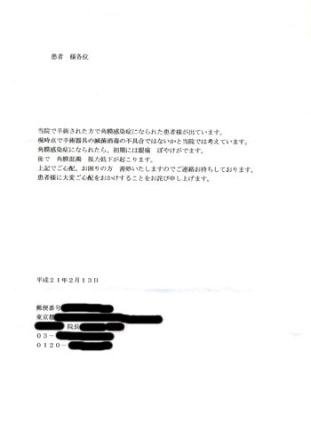 当院で手術された方で角膜感染症になられた患者様が出ています。