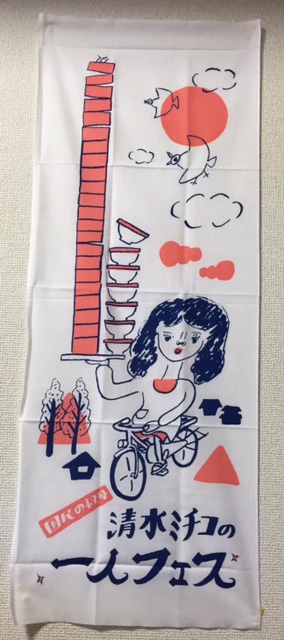 清水ミチコさんのフライヤーポスターと併せてツアーグッズ(来場者全プレ)の手ぬぐいの絵、クリアファイルの絵も描きました。この手ぬぐいには、誤字は幸いありませんでした。