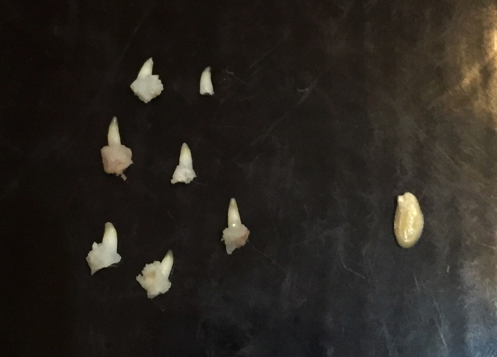 折れたものもあり、どうにかペンチなどで採取した牙が、こちら。