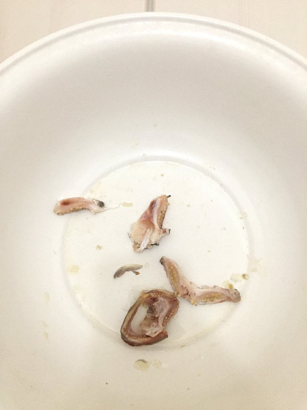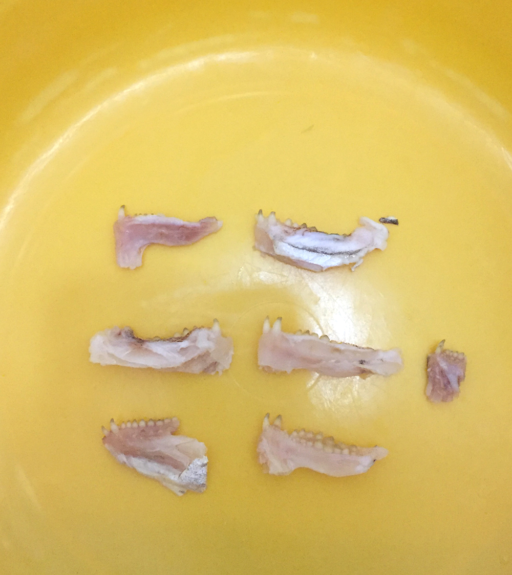 包丁、調理ハサミ、ペンチを駆使して顎の部分だけ採取します。
