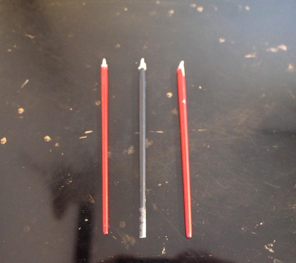 エポキシ系の2液性の接着剤などで、棒の先にくっつけます。