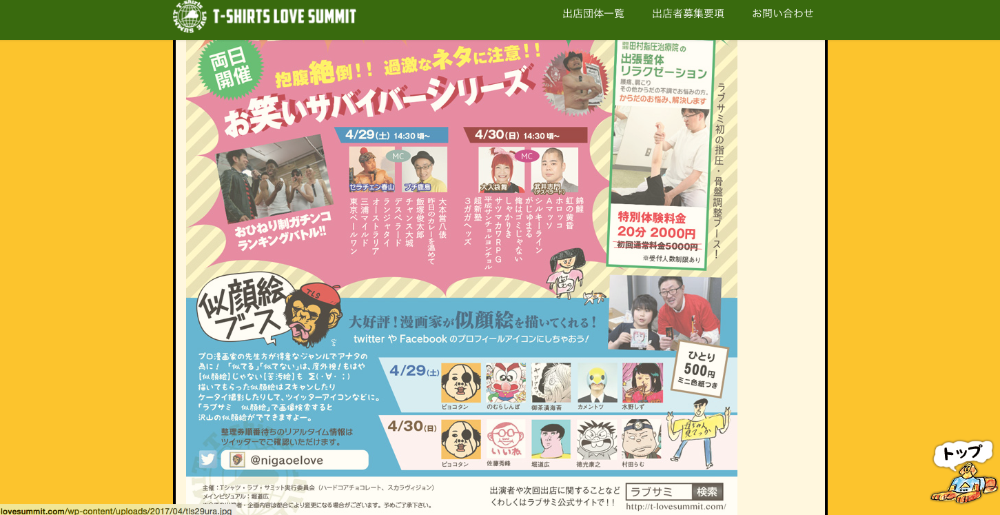 30日(日)、Tシャツ・ラブ・サミットの似顔絵ブースで似顔絵描きします。(科学技術館1F催事場)