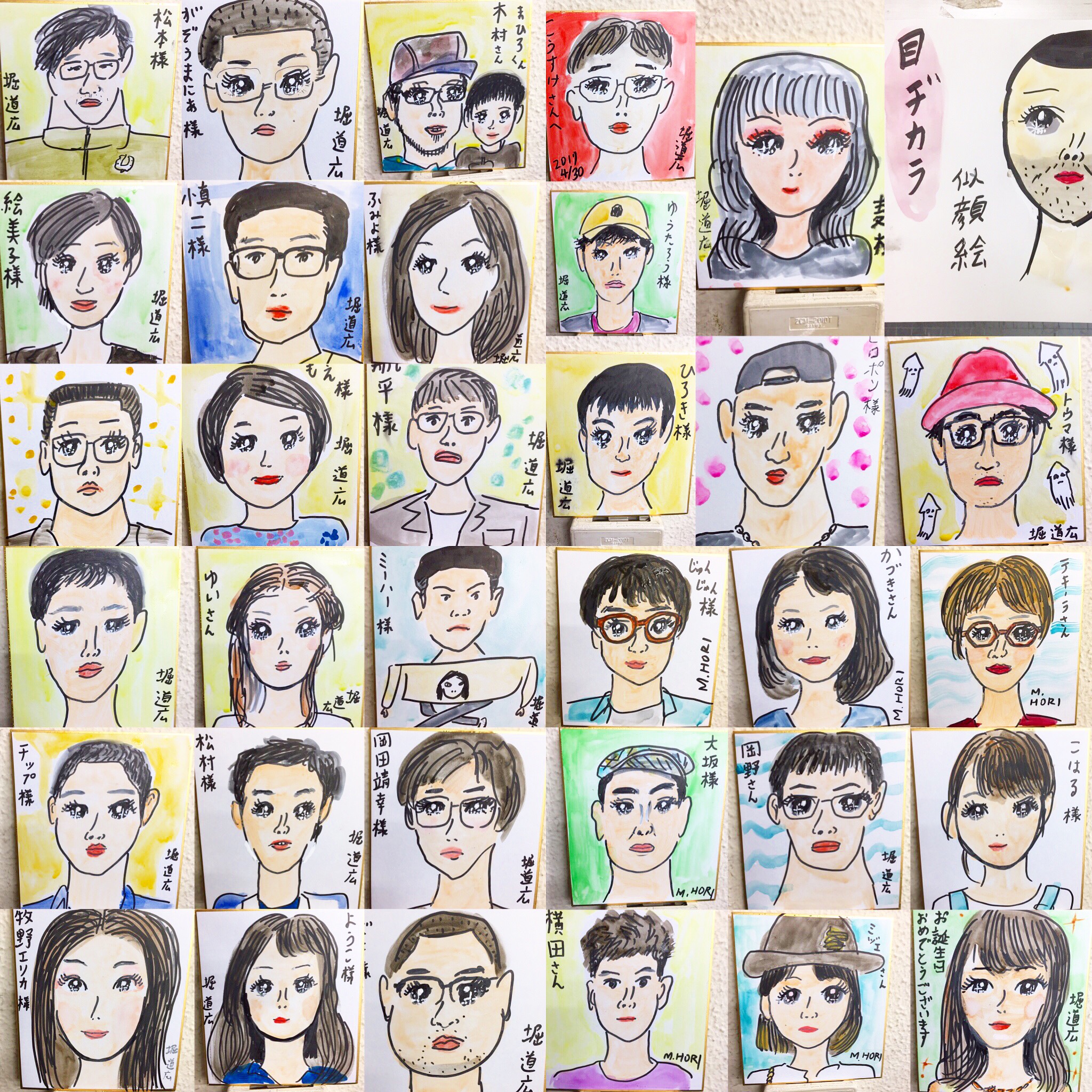 Tシャツ・ラブ・サミットの漫画家似顔絵コーナーで描いた目ヂカラ似顔絵の一部です。