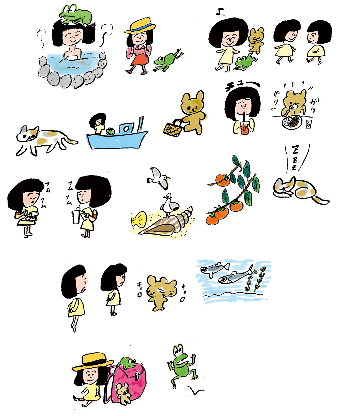 イラストいろいろ描きました。旅先の大分の丹羽茶舗さんで描いた思い出。