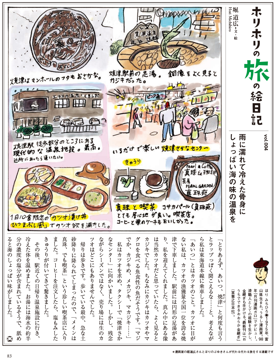 「ひととき」(ウェッジ)という新幹線のグリーン車に置かれている雑誌に、ほりのぶゆき先生と交互に「ホリホリの旅の絵日記」という1p連載が始まりました。