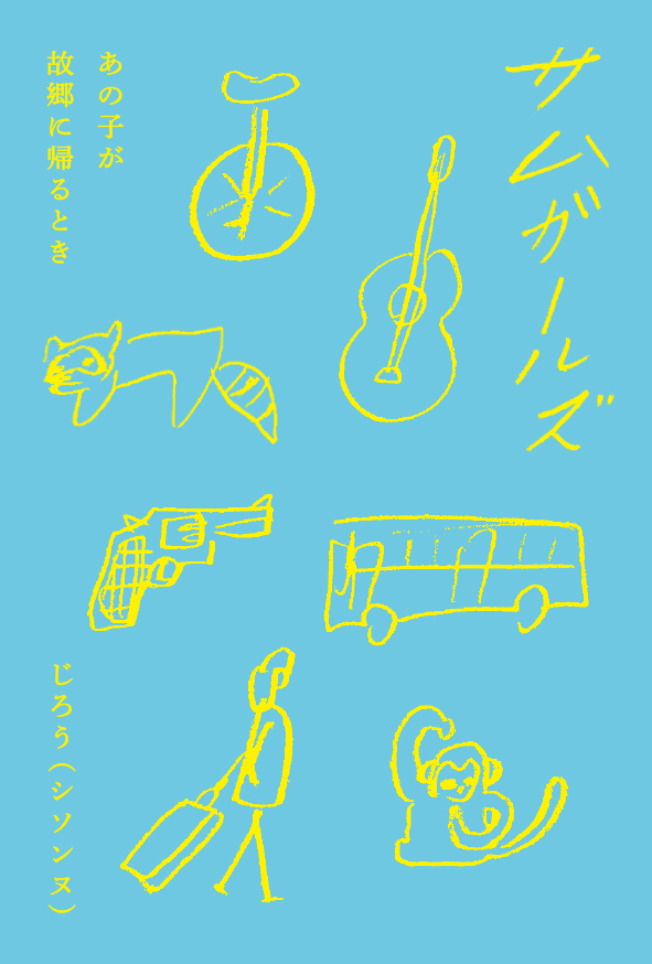「サムガールズ」(ヨシモトブックス)というシソンヌのじろうさんの本の表紙の題字と、中のイラストを描いています。上の2点は、イベント用のポストカードです。