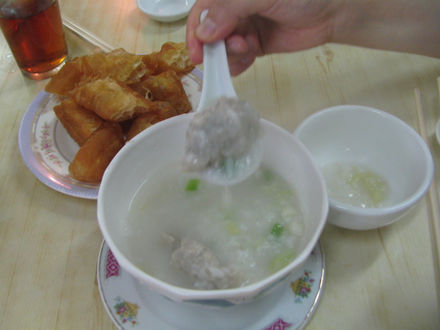 お粥とお粥に入れる揚げパンが、なんともうまい。