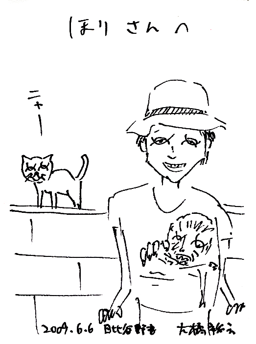 ・ミドリの野音のライヴに行った。岩見さんに香港で買ったチンポをあげた。クリトリック・リスという、ものすごいバンドを知った。もうガツンときた。 大橋さんにまた似顔を描いてもらった。ニャー!