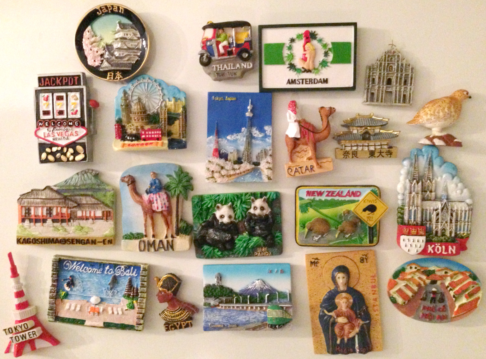 観光地のお土産ものの、冷蔵庫に貼るマグネットを集めています。