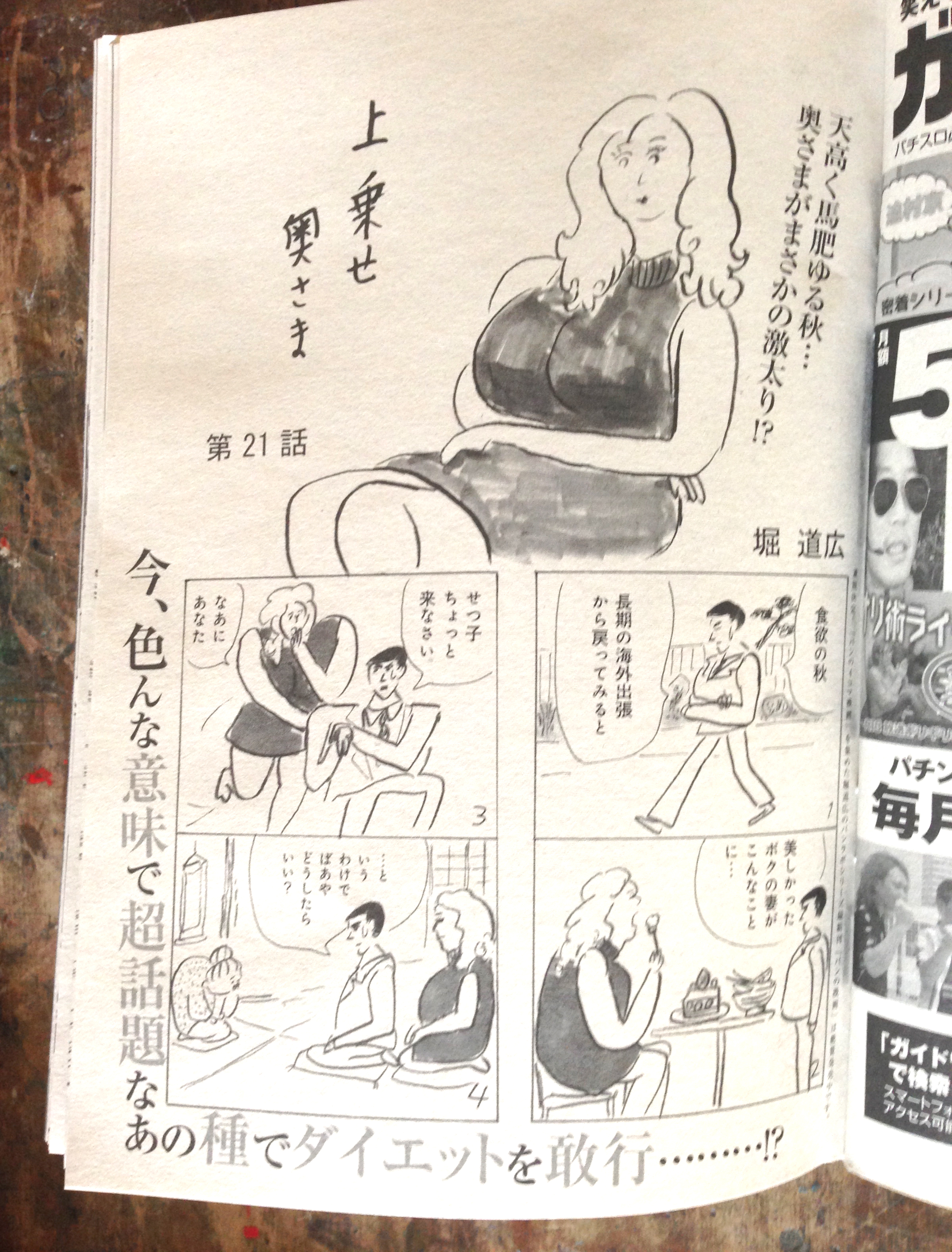 「上乗せ奥さま」21話が掲載されています。 奥さまが激太りするけど、「パチスロドリームジャンボ」の フリーズ演出のあまりの長さでこうむる精神ストレスを利用した ダイエット法で痩せる、という危険な話です。 実際、読んでみてください。