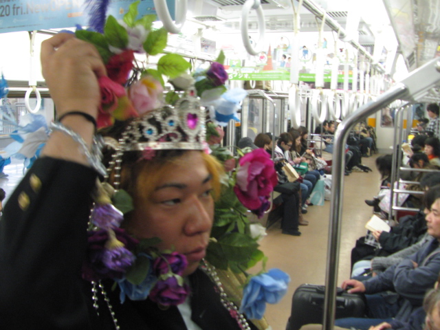 山手線で新宿まで移動する際、満員の車内でスシ詰め状態の浅田拓さん。周りの中学生から思わず黄色い歓声が。