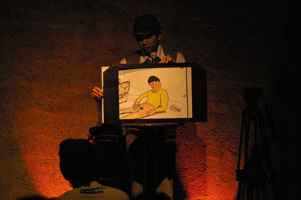 (写真は年末の漫画家バンド大戦の時のもの。三本義治さんより頂戴)