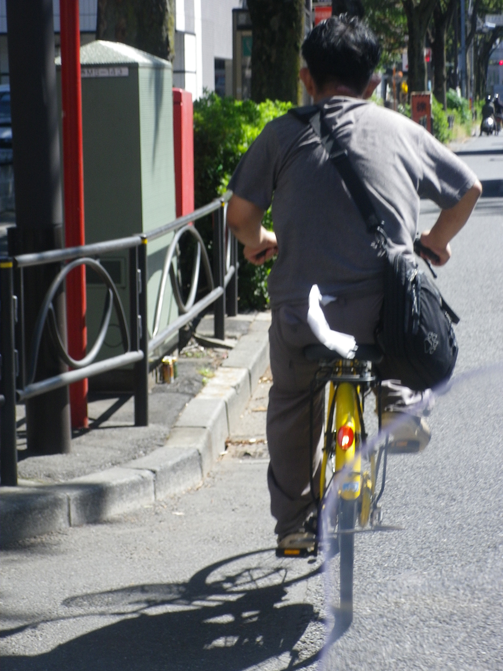 トイレでお尻を拭いた後、トイレットペーパーを2m位はさんだまま自転車で忍者の早走りの修行のように風になびかせて全力疾走している人を見た。甲州街道を新宿方向に向かっていた。無事、新宿に着いただろうか。
