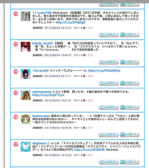 今日つぶやいたどうでもいいつぶやきが、ついっぷるトレンドで15位に入ってたと、友人が教えてくれました。(その時間だけ、ね)