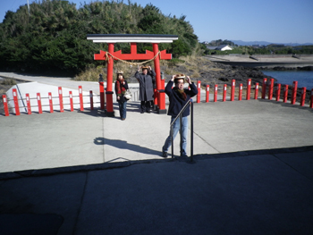 お釜の蓋をかぶって鳥居から賽銭箱まで歩くと願いがかなう、という変わった神社に行きました。IKKOのサインが何枚もありました。オカマだからでしょうか?写真は、知らない人です。