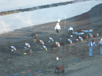 指宿のほうの、砂むし温泉、という温泉に行き、砂に埋められてきました。けっこう暑いです。「生きたまま砂に埋められる」、という行為は初めてで、楽しいので埋められたことのない人は一度経験してみ。死んでから埋葬されるからいいか、とは思いますが