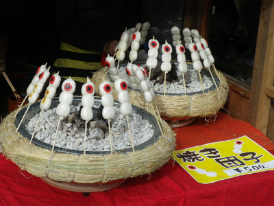 深大寺はさすが「ゲゲゲ」の地元らしく、目玉の親父が串刺しになって売っていました。