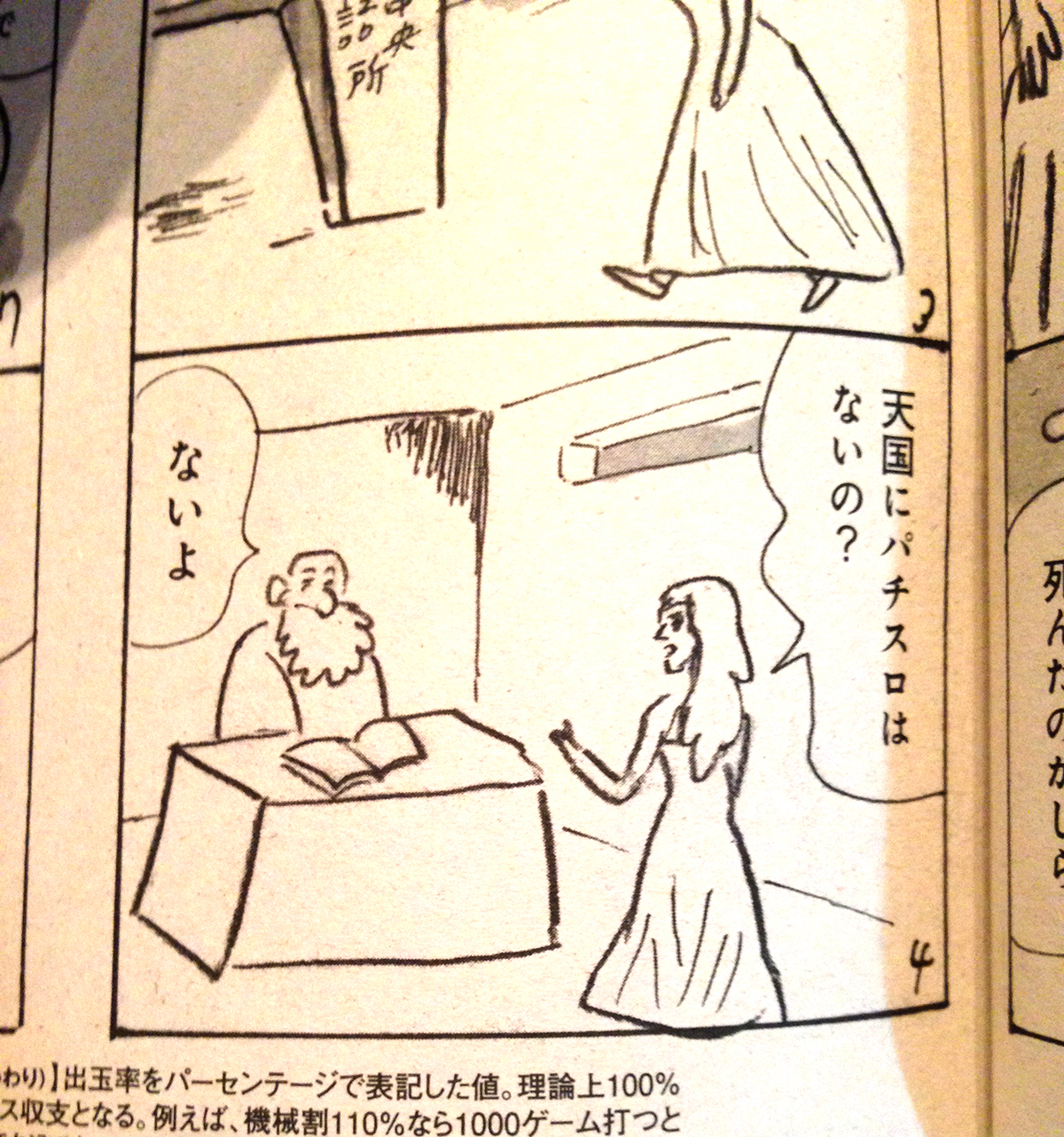 (パチスロのマンガは機種が3ヶ月おきに入れ替わる季節のくだもの的なものなので自分程度の漫画家のマンガは単行本化されなくて、)必然的に描き捨て読み捨ての仕事になるわけなんですが、この4年間けっして不毛だったわけではなく、不得手なジャンル+話をネタを絡ませたマンガを作るというのは、自分でも勉強になりました。