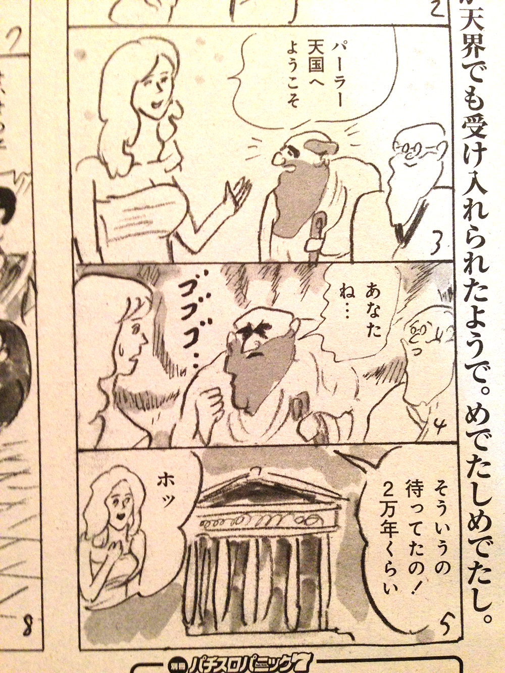 普段は、まったくパチスロを打たない人間なので、だんだんとネームを考えるのが苦痛になり、6ページの連載だったんだけど、1週間〜10日ほど、時間をかけて描いていました。(これでも)