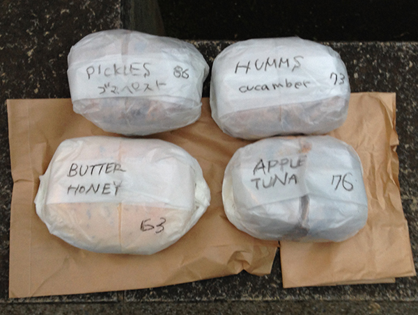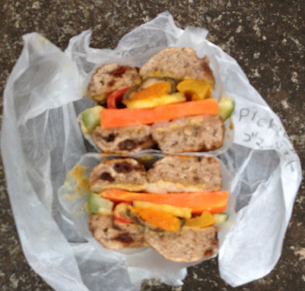ごまペーストとピクルスとライ麦キャラウェイレーズンベーグル