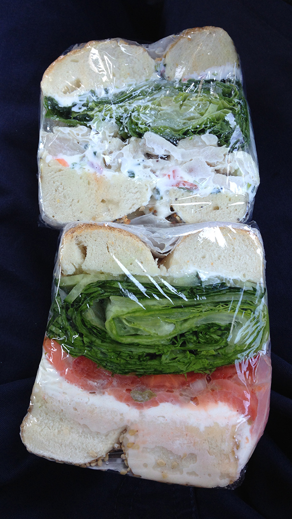 ツナとアップルシナモンクリームチーズとライ麦キャラウェイレーズンのベーグル