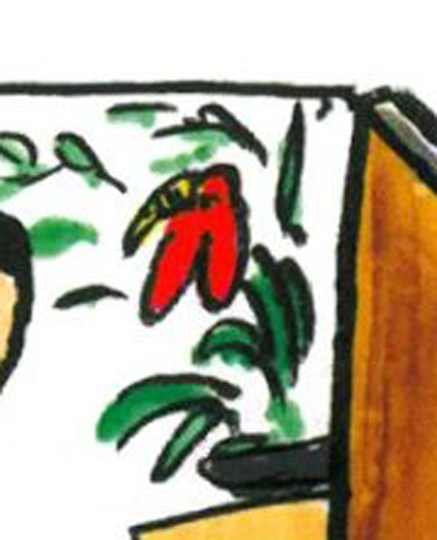 じつは、先にアップしたつり革のおばあちゃんの絵を、展示しています。