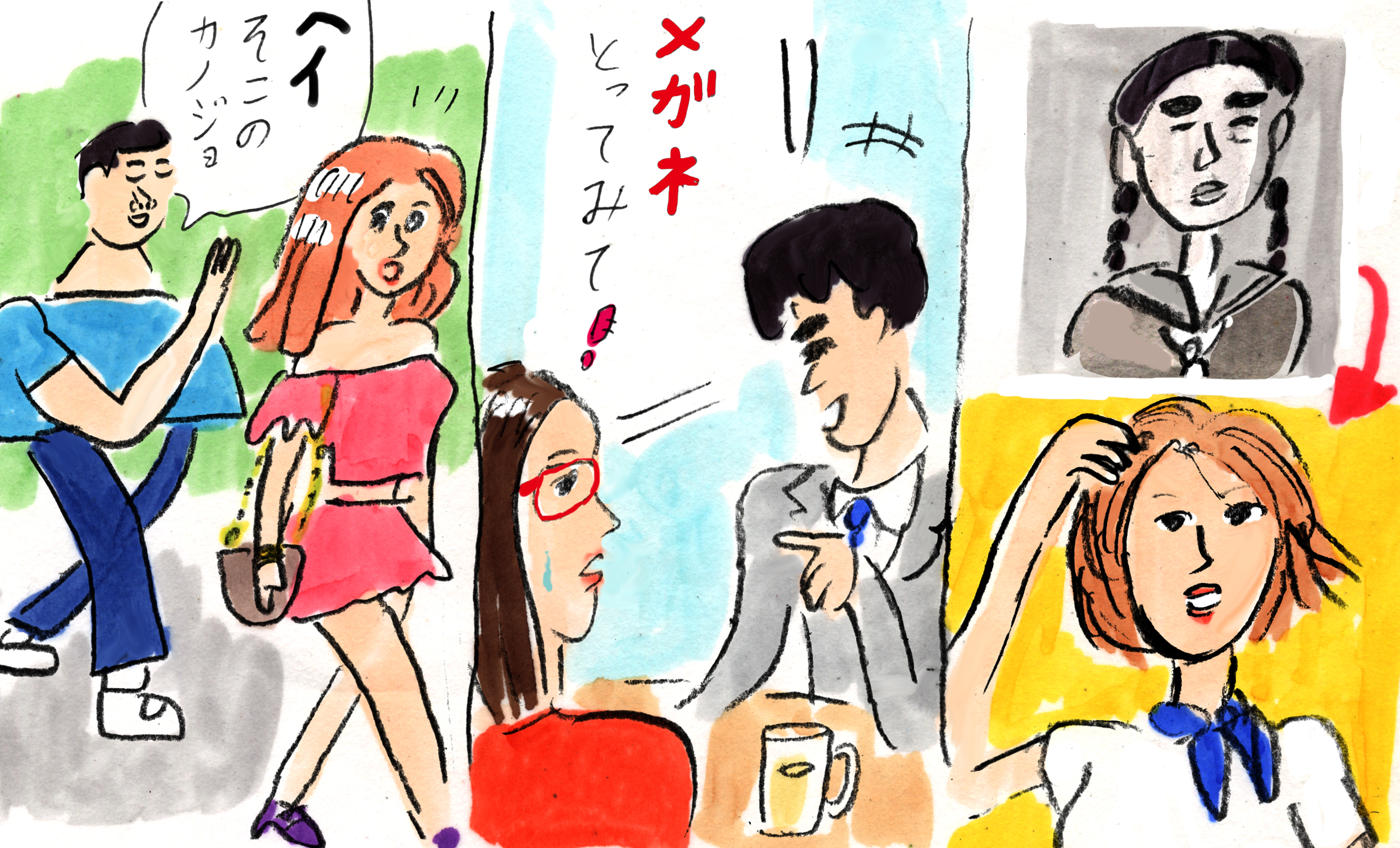 auヘッドラインでスマホだけで見られる番組「光浦靖子のマッタン相談所」の更新(毎週更新)が60回を超えたので、使われたイラストをアップしておきます。