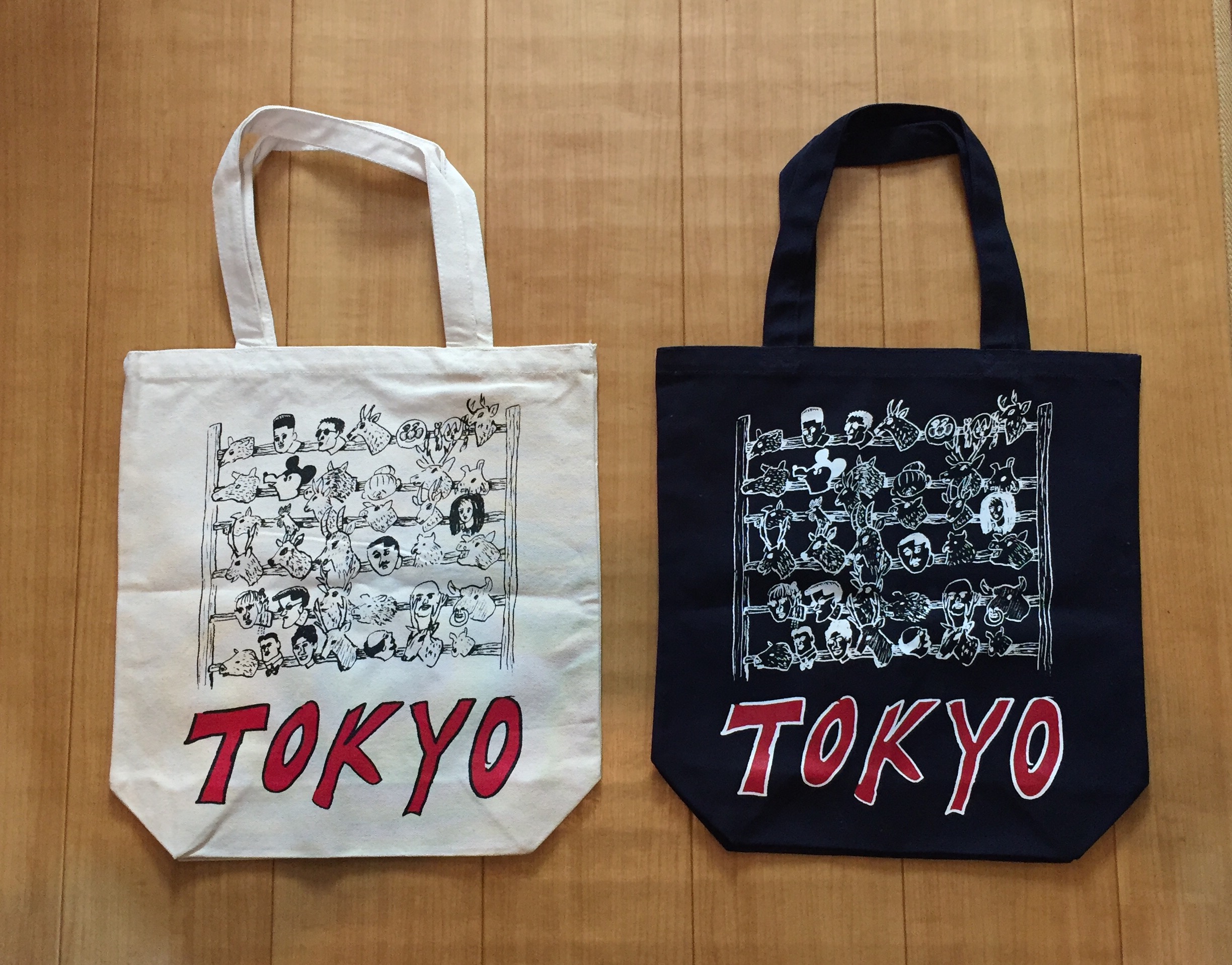 下北沢の孤高のハイブリッド古書店、古書ビビビさんのご依頼で、トートバッグの絵を描きました。なぜか、さらし首、なぜかTOKYOの文字が・・