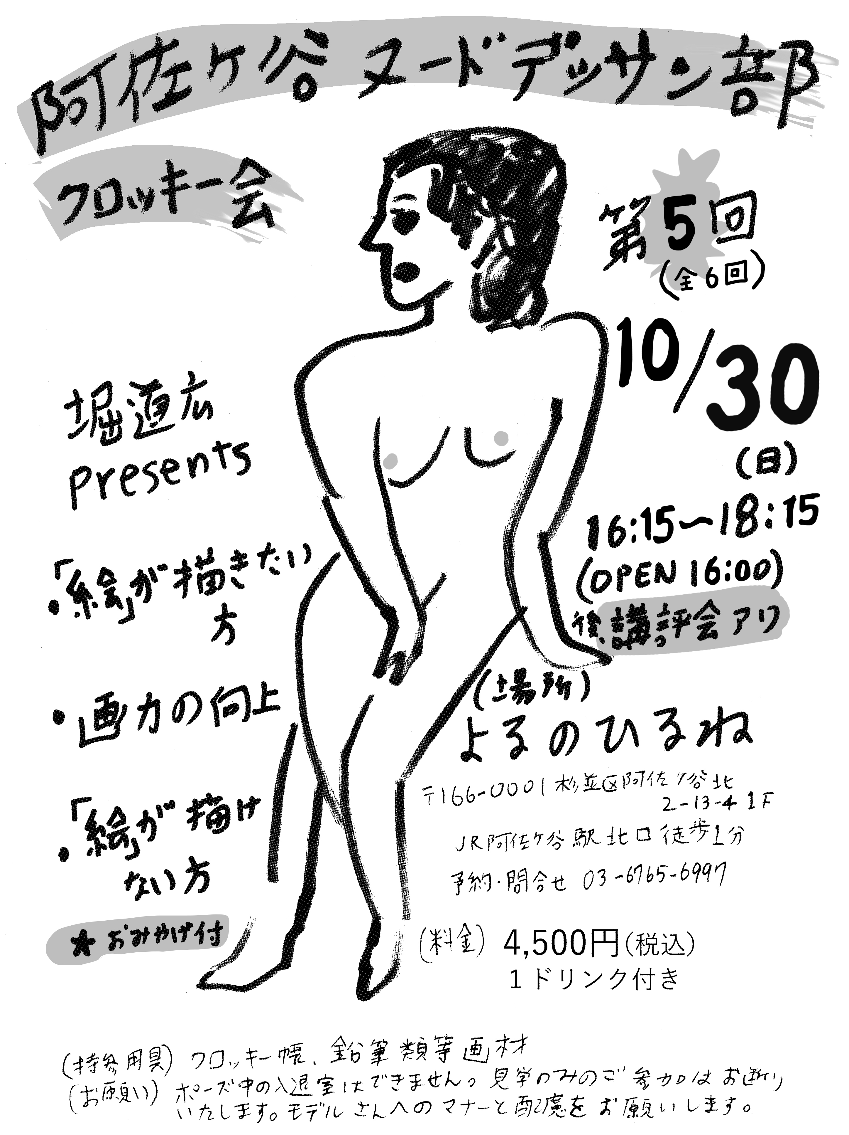 10/30(日)第5回 阿佐ヶ谷ヌードデッサン部クロッキー会