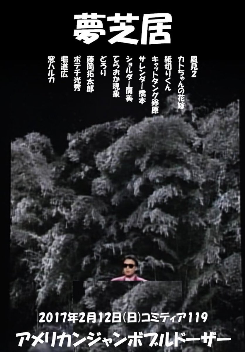 2/12(日)開催のコミティア119で漫画の同人誌「夢芝居」に参加しています。サークル名は、「アメリカンジャンボブルドーザー」です。「谷間家の世代」という10ページの漫画を描きました。谷間にどうしても惹きつけられてしまう家族のお話です。参加のメンバーが、好きな漫画家の人ばかりで、嬉しいです。
