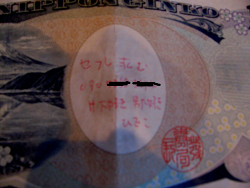 1000円札に何か書いてある・・・