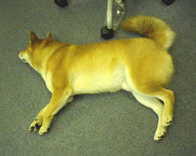 青林工藝舎の編集犬、ラッキー氏です。夜も遅かったので寝ていました。